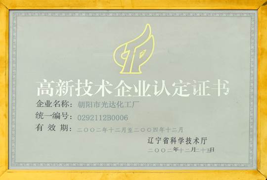 高新技術(shù)企業(yè)認(rèn)定證書2002
