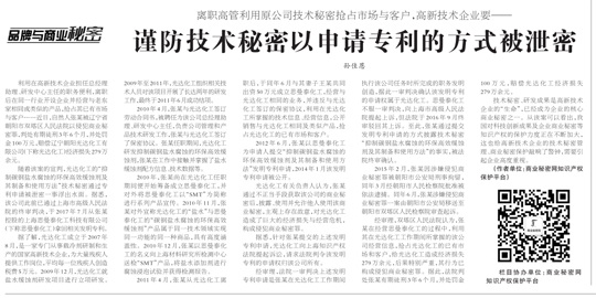 原標(biāo)題:離職高管利用原公司技術(shù)秘密搶占市場與客戶,高新技術(shù)企業(yè)要——謹(jǐn)防技術(shù)秘密以申請專利的方式被泄密