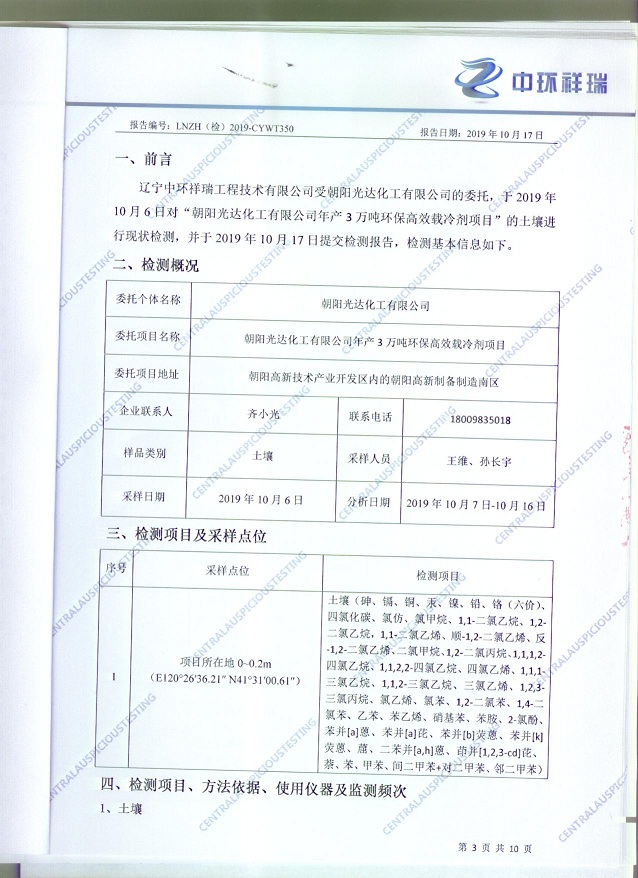 朝陽(yáng)光達(dá)化工有限公司土壤檢測(cè)報(bào)告公示