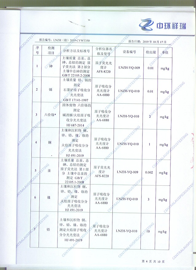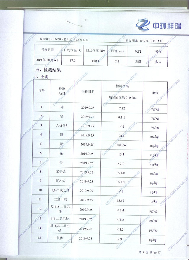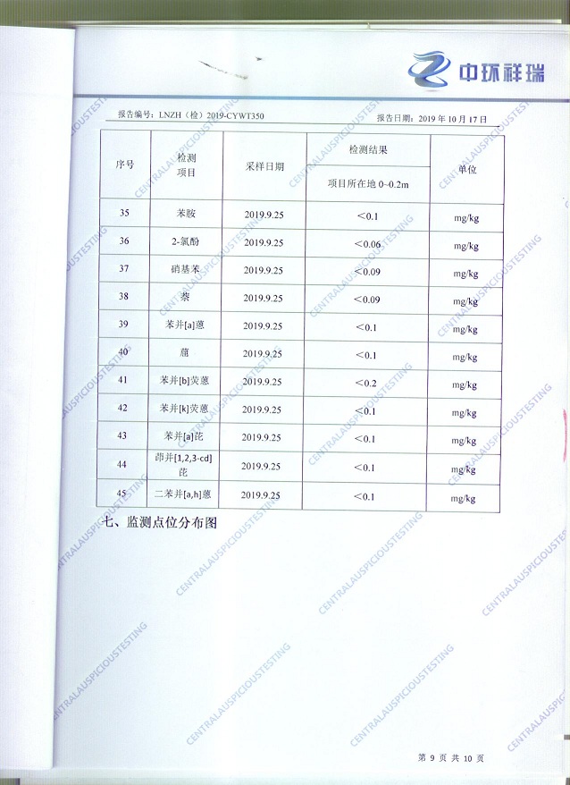 朝陽(yáng)光達(dá)化工有限公司西廠區(qū)土壤檢測(cè)報(bào)告公示