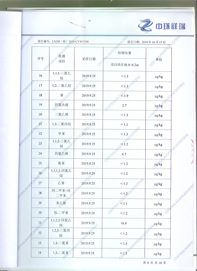朝陽(yáng)光達(dá)化工有限公司老廠區(qū)土壤檢測(cè)報(bào)告公示